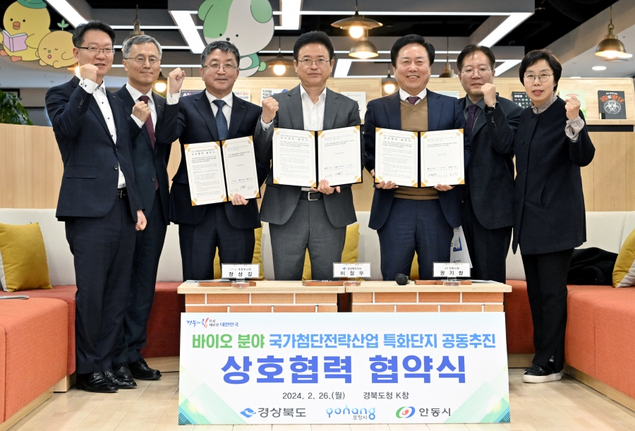경북도가 지난 26일 도청 안민관 K창에서 포항시, 안동시와 ‘바이오 국가첨단전략산업 특화단지’ 공동 추진을 위한 상호협력 협약을 체결했다. 도는 포항시, 안동시와의 협력 체계를 구축하고 연구, 기술산업화 역량(R&D)과 생산·실증 분야 기반을 유기적으로 연계해 바이오 특화단지 공모에 대응한다. 안동에는 국가첨단백신개발센터(백신 후보 물질 발굴), 백신상용화기술지원센터(후보물질 비임상시험), 동물세포실증지원센터(임상시료 생산) 등 백신 생산 지원 기반시설을 보유하고 있다. 포항에는 세포막단백질연구소와 바이오미래기술혁신연구센터, 포항가속기연구소, 포항산업과학연구원, 포항공대 등 백신과 세포·유전자 치료제 연구개발을 위한 시설과 인력을 갖추고 있다. 경북도는 바이오 국가첨단전략산업 특화단지 유치로 기업 민간투자 활성화에 총력을 다할 방침이다. 이를 위해 혁신벤처기업 성장 단계별 맞춤형 투자를 위해 5년간 1조원 규모 민간투자펀드 조성으로 바이오 등 국가첨단전략산업 분야 혁신성장기업을 지원한다. 정부는 이달까지 바이오 국가첨단전략산업 특화단지 지정을 위한 공모를 진행하고 상반기 중 발표할 예정이다. 이철우 경북도지사는 “도는 구미 반도체, 포항 2차전지 특화단지에 이어 경북 바이오․백신 산업 특화단지를 유치해 3대 국가첨단산업 생태계 조성에 총력을 다하겠다”고 말했다.