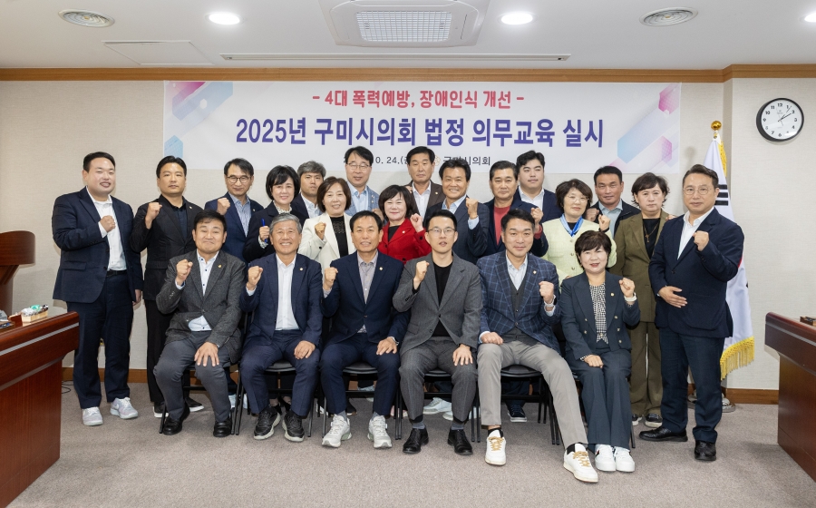 구미시의회(의장 박교상)는 지난 24일 의회 간담회장에서 의원 및 직원을 대상으로 ‘2025년도 법정의무교육’을 실시했다.