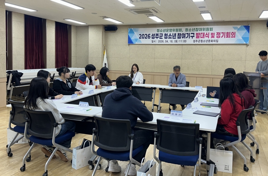 성주군은 지난 18일 성주군청소년문화의집 1층 강당에서 청소년 참여기구인 청소년 참여 및 운영위원회 13명이 참석한 가운데 ‘2026년 참여기구 발대식 및 정기회의’를 개최했다.