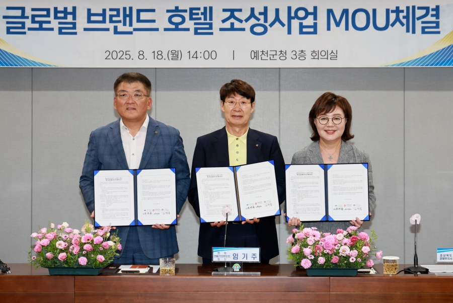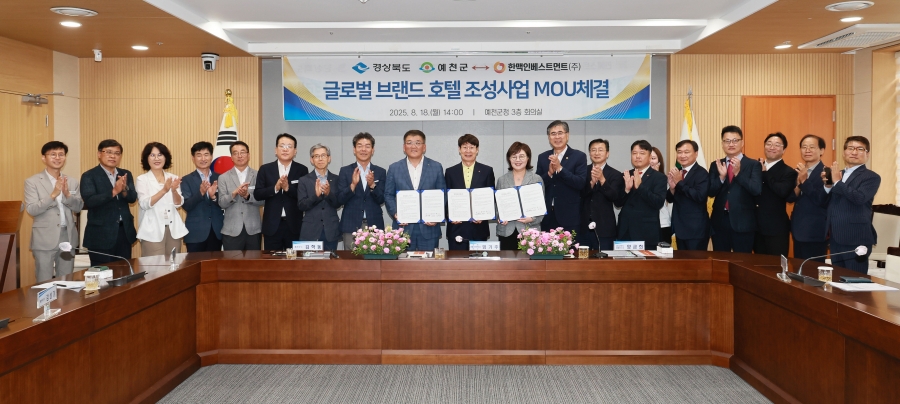 이날 체결식에서는 양금희 경북도 경제부지사, 김학동 예천군수, 임기주 한맥인베스트먼트(주) 대표, 등 관계 공무원 및 사업 관계자 30여 명이 참석한 가운데 진행됐다. 사업은 예천군 내 글로벌 브랜드 호텔을 조성하는 것으로, 한맥인베스트먼트(주)는 2025년부터 2029년까지 약 1,000억원을 투자해 약 6만㎡ 부지에 고품격 숙박시설을 구축할 계획이다. 경북도는 이번 사업을 통해 글로벌 브랜드 호텔 조성과 운영으로 지역의 새로운 상징물을 확보하고, 서비스 분야 전문인력 양성과 관광인프라 확충을 통해 관광객 유치는 물론 지역경제 활성화에도 크게 이바지할 것으로 기대한다. 이번 호텔 유치는 경북도가 추진 중인 ‘1시군 1호텔’ 정책의 하나로, 시군의 여건과 수요를 반영해 고품격 숙박시설을 단계적으로 확충해 나가는 흐름과 맞닿아 있다. 특히 경상북도는 동해안 철도 개통으로 접근성이 향상되고, 유네스코 세계유산 전국 최다 보유와 전국 문화재의 15%를 차지하는 등 풍부한 역사 문화 자산을 바탕으로 독보적인 관광 경쟁력을 지니고 있어, 이러한 관광 자산이 정책과 맞물리며 가치를 한층 더 주목받고 있다. 예천군은 천년고찰 용문사와, 낙동강 지류인 내성천이 마을을 휘감아 돌아가는 육지 섬마을인 회룡포, 예천곤충생태원, 예천진호양궁장 등 풍부한 관광 및 레저자원과 더불어 경상북도 북부권의 교통 요충지에도 불구하고 부족한 숙박 인프라로 인해 관광산업의 어려움이 있었다. 이번‘글로벌 브랜드 호텔 조성사업’을 시작으로 북부권 관광거점 조성을 통해 내륙 관광 활성화에 박차를 가할 계획이다. 양금희 경북도 경제부지사는 “최근 어려운 경제 여건과 불확실한 대내외 환경 속에서도 한맥인베스트먼트(주)가 도내에 과감한 투자 결정을 내려주신 데에 대해 진심으로 감사드린다”며, “이번 호텔 건립사업을 계기로 예천군이 보유한 천혜의 자연환경과 풍부한 생태관광 자원, 그리고 자랑스러운 전통 문화유산을 적극 활용하여 경북 북부권이 내륙관광의 새로운 중심지로 도약할 수 있도록 적극 지원하겠다”고 밝혔다. 김학동 예천군수는 “최근 경북도청 이전과 양궁, 육상 등 각종 국내외 스포츠대회 개최 그리고 천혜의 자연경관을 즐기기 위해 지역을 방문하는 관계인구가 증가하는 시점에서 이러한 호텔이 들어서게 되면 지역경기 활성화에 큰 도움이 될 수 있을 것이다”고 말했다.