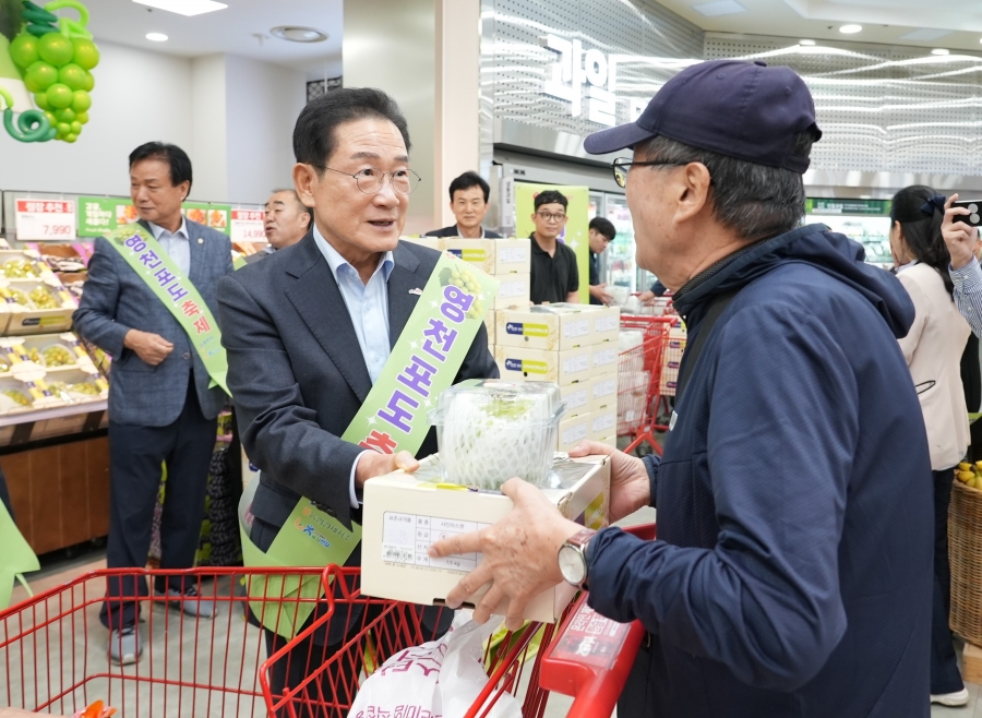 이번 행사는 영천포도의 실질적인 판매량 증대와 우수성 홍보는 물론, 올 한해 저온피해와 9월까지 이어진 폭염으로 어려움을 겪은 포도농가를 적극 지원하기 위해 마련됐다. 시는 이번 행사를 통해 지역 농가와 상생협력하며, 본격적인 출하 시기에 맞춰 샤인머스캣 1.5kg상자 7만개, 총 105톤을 전국 롯데마트 109개점과 롯데슈퍼 219개점에 공급해 당도와 품질이 뛰어난 최상의 상품을 전국 소비자에게 선보일 예정이다. 행사 첫날에는 최기문 영천시장, 김종욱 영천시의회 부의장, 김강훈 농협 영천시지부장, 성영근 영천농협조합장, 조합공동사업법인 대표 등이 롯데마트 제타플렉스 서울역점에 방문해 현장에서 판촉활동을 펼치며 홍보에 앞장섰다. 시는 영천포도의 우수성을 홍보하기 위해 매년 전국 롯데마트에서 영천포도 특판행사를 열고 있으며, 지난 9월에는 전국 하나로마트에서도 판촉행사를 진행해 샤인머스캣 1.5kg 2만 박스, 총 30톤을 완판했다. 이번 행사 종료 후 23일부터 29일까지는 전국 이마트와 함께하는 포도 축제를 이어가, 생산 안정과 소비 확대에 적극 나설 계획이다. 최기문 시장은 “영천은 샤인머스캣의 주산지로 명품 포도를 생산하고 있지만, 최근 홍수로 인해 농가의 시름이 깊어지고 있다”며, “전국 유통망을 보유한 롯데마트 행사에 이어 이마트 판촉행사를 진행해, 재배농가의 안정적인 생산과 소득 증대를 위해 최선을 다하겠다”고 말했다.
