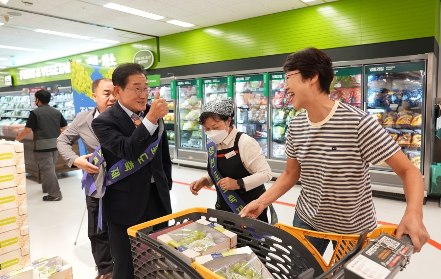 이번 행사는 포도 농가의 상생과 소득증대를 도모하고, 영천포도의 우수성을 널리 알리기 위해 마련됐다. 고당도와 최상급 품질을 자랑하는 영천 샤인머스캣의 폭발적인 인기에 힘입어, 당초 계획보다 1.5kg 상자 1만박스(15톤)가 추가된 총 8만박스(120톤)가 전국 이마트 전 지점에 출하된다. 행사 첫날인 23일 최기문 영천시장, 김선태 영천시의장, 김강훈 농협 영천시지부장, 김천덕 금호농협조합장과 조합공동사업법인 대표 등이 서울 이마트 용산점을 방문해 현장 판촉활동을 펼치며 소비자 홍보에 직접 나섰다. 시는 영천포도의 우수성을 홍보하기 위해 매년 대형 유통마트와 협력해 영천포도 특판행사를 진행하고 있다. 지난 9월에는 전국 하나로마트에서 샤인머스캣 1.5kg 2만박스(30톤)을 완판했으며, 지난 16일부터 22일까지 전국 롯데마트, 롯데슈퍼 328개 지점에서 열린 영천포도 축제에서도 준비한 1.5kg 7만박스(105톤)를 모두 판매하는 성과를 거뒀다. 최기문 시장은 “이번 행사는 전국 소비자들이 대형마트에서 영천의 우수하고 품질 좋은 샤인머스캣을 쉽게 만나볼 수 있도록 특별히 준비했다”며, “올해 저온 피해와 9월까지 이어진 폭염 등으로 어려움을 겪은 포도농가의 안정적인 생산기반 조성과 농가 소득증대를 위해 지속적으로 노력하겠다”고 말했다.