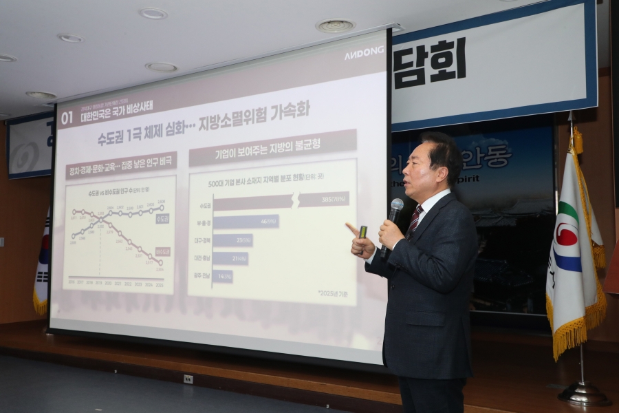 이번 간담회에는 관내 각 기관 및 단체장 100여 명이 참석했으며, 최근 특별법이 국회에 발의되는 등 경북․대구 행정통합 논의가 빠르게 진행되는 가운데, 통합이 지역 발전으로 이어지기 위해 반드시 검토돼야 할 조건과 우려 사항을 점검하고 지역사회의 공감대를 형성하기 위해 마련됐다. 간담회에서는 수도권 집중 심화와 비수도권 인구 감소, 기업․산업의 수도권 편중 등 국가적 구조 문제 속에서 경북․대구가 처한 현실을 짚고, 행정통합이 실질적인 지역 균형발전 전략이 돼야 한다는 점이 공유됐다. 특히 경북 북부권과 남부권 간 격차, 성장축의 불균형 문제에 대한 우려가 함께 제기됐다. 이 자리에서 권기창 안동시장은 행정통합과 함께 추진되고 있는 특별법과 재정 지원 방안과 관련해 ▲통합특별시 청사 소재지에 대한 명확한 기준 마련 ▲정부 재정지원의 법적 근거와 규모 명시 ▲광역 통합 이후 시․군․구로의 권한 및 재정 이양 범위 구체화 ▲도청 신도시 및 경북 북부권 발전을 위한 제도적 보장 필요성 등을 행정통합 논의의 선결과제로 설명했다. 이어진 논의에서는 행정통합이 성공하기 위해서는 충분한 논의 과정과 절차적 정당성이 확보돼야 하며, 재정 지원과 권한 배분이 구체적인 기준 없이 추진될 경우 지역 간 불균형이 심화될 수 있다는 의견이 나왔다. 또한 통합 인센티브로 제시된 재정 지원과 대형 프로젝트에 대해서도 실질적인 추가 지원 여부와 지속 가능성에 대한 명확한 설정이 필요하다는 의견이 제시됐다. 안동시는 이번 간담회에서 제기된 의견을 바탕으로, 향후 행정통합 논의 과정에서 지역 균형발전과 주민 권익이 실질적으로 보장될 수 있도록 제도적 보완 사항을 지속적으로 건의해 나갈 계획이다. 권기창 안동시장은 “행정통합은 지역의 미래와 직결되는 사안인 만큼 속도보다 내용이 중요하다”며, “지역 간 균형발전이 제도적으로 담보되고 주민들이 충분히 이해할 수 있는 방향으로 논의가 이뤄질 수 있도록 소통을 이어가겠다”고 밝혔다.