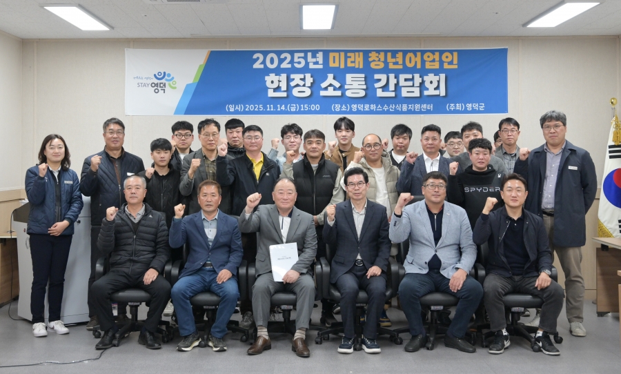 영덕군은 청년 어업인과 내년 수산 관련 시책을 공유하고 현장의 애로사항을 논의하기 위해 지난 14일 영덕 로하스수산식품지원센터 회의실에서 ‘미래 청년어업인 현장 소통 간담회’를 개최했다.