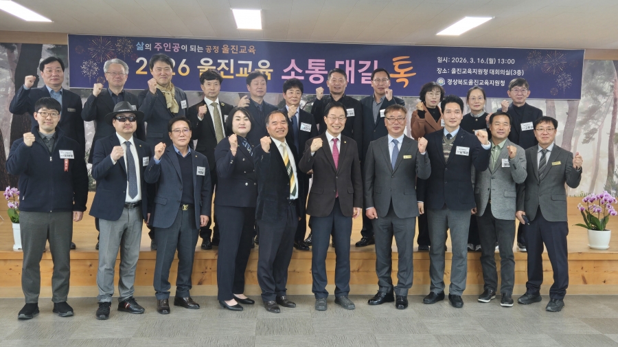 울진교육지원청(교육장 이기협)은 지난 16일 본청 대회의실에서 관내 각급 학교장 대표단, 교육단체, 학부모 대표 등 울진 교육가족 20여 명을 초청하여 ‘2026 교육감과 함께하는 울진교육 소통대길 톡’을 개최했다.