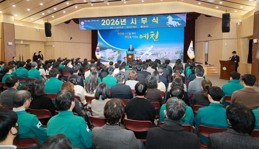 예천군은 지난 2일 군청 대강당에서 ‘2026년 시무식’을 갖고 새해 힘찬 출발을 다짐했다.