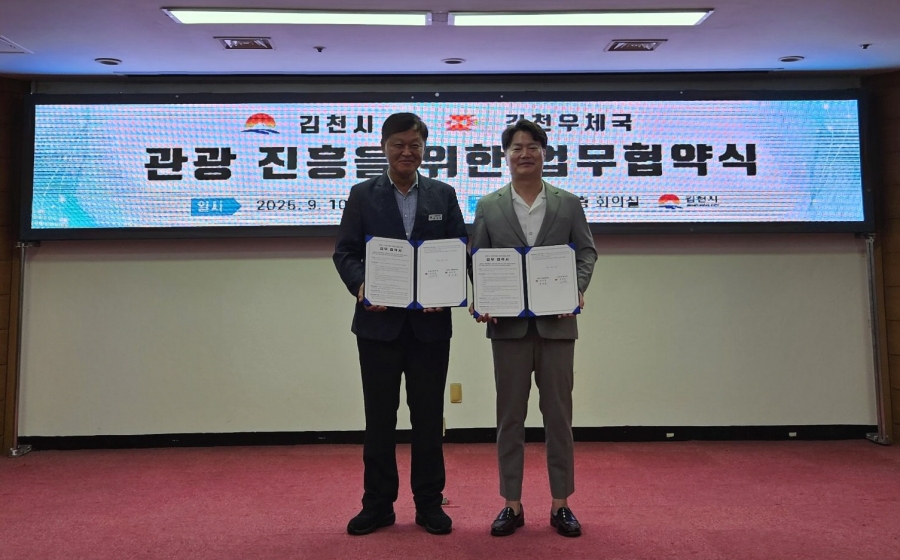 김천시와 김천우체국은 지난 10일 김천시청에서 지역 관광진흥을 위한 업무협약을 체결했다. 이날 협약식에는 윤상영 김천시 경제관광국장, 김상호 김천우체국장을 비롯한 양 기관 관계자들이 참석해 관광진흥 상호 협력 방안을 함께 논의했다. 이번 협약은 양 기관의 새로운 행정 동력을 얻었다는 점에서 큰 의미가 있으며, 향후 관광을 넘어 행정 전 분야의 시정 홍보에 긍정적 파급효과를 가져올 것으로 예상된다. 양 기관은 신규 사업으로 우체국 택배 박스에 축제 홍보스티커를 부착하는 사업을 추진한다. 김천 특산물 포도 택배 물량이 집중되는 9월부터, 우체국 택배 발송 시 사용되는 파손주의 스티커에 김천김밥축제 홍보 이미지를 함께 삽입하여 전국 각지로 발송된다. 이를 통해 택배 이용객들의 일상 속에 자연스럽게 노출되는 생활밀착형 홍보 효과를 거둘 수 있을 것으로 기대된다. 윤상영 경제관광국장은 “우체국 택배 시스템을 활용해 김천김밥축제를 비롯한 김천의 다양한 관광자원을 전국적으로 알릴 수 있는 계기를 마련했다”며, “많은 사람들이 생활 속에서 김천을 떠올릴 수 있도록 앞으로도 긴밀한 협력관계를 이어가겠다”고 밝혔다. 이번 협약체결로 김천시는 지역 관광 홍보와 관광객 유치 기반을 강화하고, 김천우체국은 자체 인프라를 통한 지역사회 기여에 한 걸음 더 나아갈 전망이다.