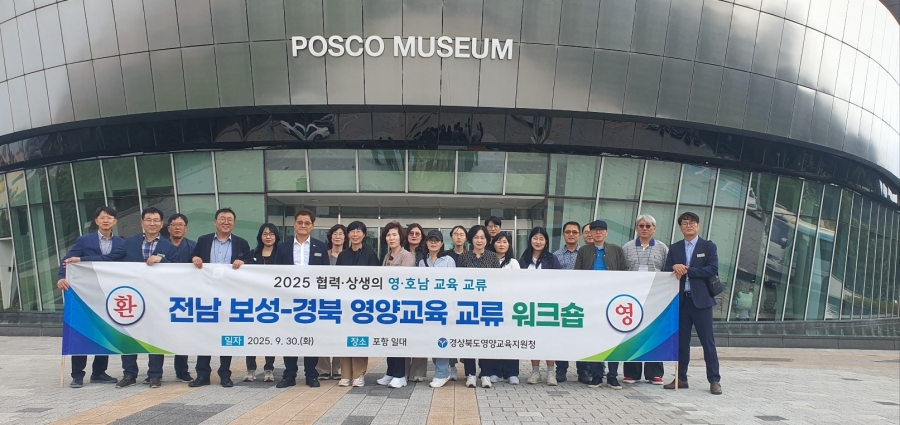 영양교육지원청은 9월 30일 영·호남 협력과 상생으로 더 나은 미래교육을 만들어 가기 위한 2025 영양교육지원청-보성교육지원청 교육 지도자 워크숍을 실시했다. 이번 교육교류 워크숍에는 보성교육지원청 김호범 교육장을 비롯해 장학사, 초·중·고 교장 등 37명이 방문했으며, 영양교육지원청 박근호 교육장 및 직원을 비롯해 관내 초·중·고 교장단 27명이 포항 일대에서 워크숍을 실시했다. 워크숍에서는 영양교육의 주요 교육 활동 및 영양미래교육지구 운영 현황에 대한 안내와 교육 현황 및 현안 문제를 상호 교환하고 미래 인재 육성을 위한 다양한 의견 교환 및 공유로 영양-보성 교육 교류 네트워크를 공고히 하는 계기가 됐다. 특히, 소규모 학교가 많은 영·호남 지역에서 소규모 학교를 활성화 방법과 지역 특색에 맞는 우수 교육 사례를 공유하며 발전 방향에 대해 다양한 의견을 나눴다. 영양교육지원청-보성교육지원청 교육 지도자들은 경북에서 유명한 포항 제철 공장과 포항 환호 공원 안에 있는 스페이스 워크, 시립미술관 등을 견학하고 문화 체험을 통해 영호남 교육 문화 교류를 나누는 뜻깊은 시간을 가졌다. 박근호 교육장은 “이번 영·호남 교육 교류를 통해 영양교육지원청과 보성교육지원청의 교육 현안을 공유하고 발전 방향을 모색하는 협력·상생의 좋은 기회가 됐다”며, “앞으로 더욱 영·호남 교육 교류가 활성화 되어 함께 행복한 교육을 만들어 나가길 바란다”고 말했다.