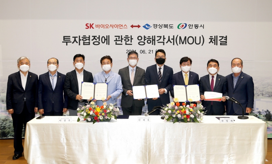 경북도와 안동시, SK바이오사이언스는 지난 21일 안동 L하우스 백신센터에서 이 같은 내용의 투자양해각서(MOU)를 체결했습니다. 이 자리에는 이철우 경북도지사와 권영세 안동시장, 김형동 국회의원, SK바이오사이언스 안재용 대표, SK디스커버리 최창원 부회장, 시·도의원 등이 참석했다.